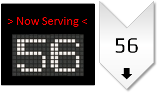 English: Example of a ticket and "Now Serving" sign used in the Ticket Queue Management System. |