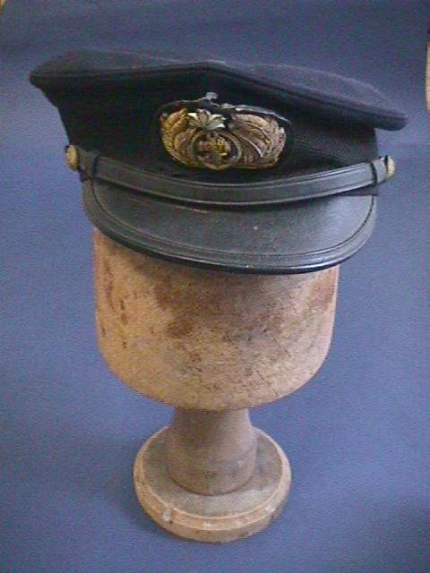 English: Japanese Navy Officer's dress uniform, that belonged to Flight Lieutenant Nobuya Kinase, Imperial Japanese Navy (Air Force), WW2 navy blue woollen cloth jacket, peaked cap with embroidered bullion naval badge, dress dagger and sheath, leather dagger belt |